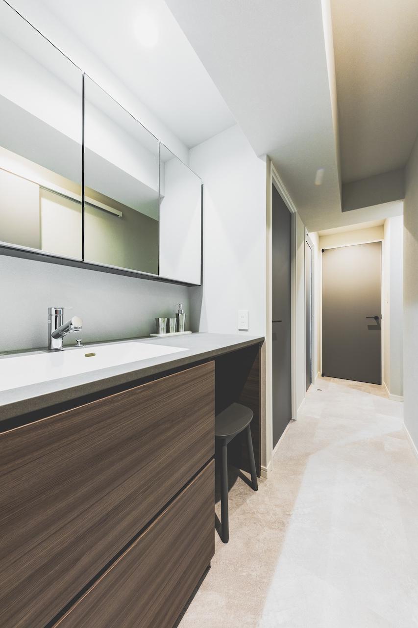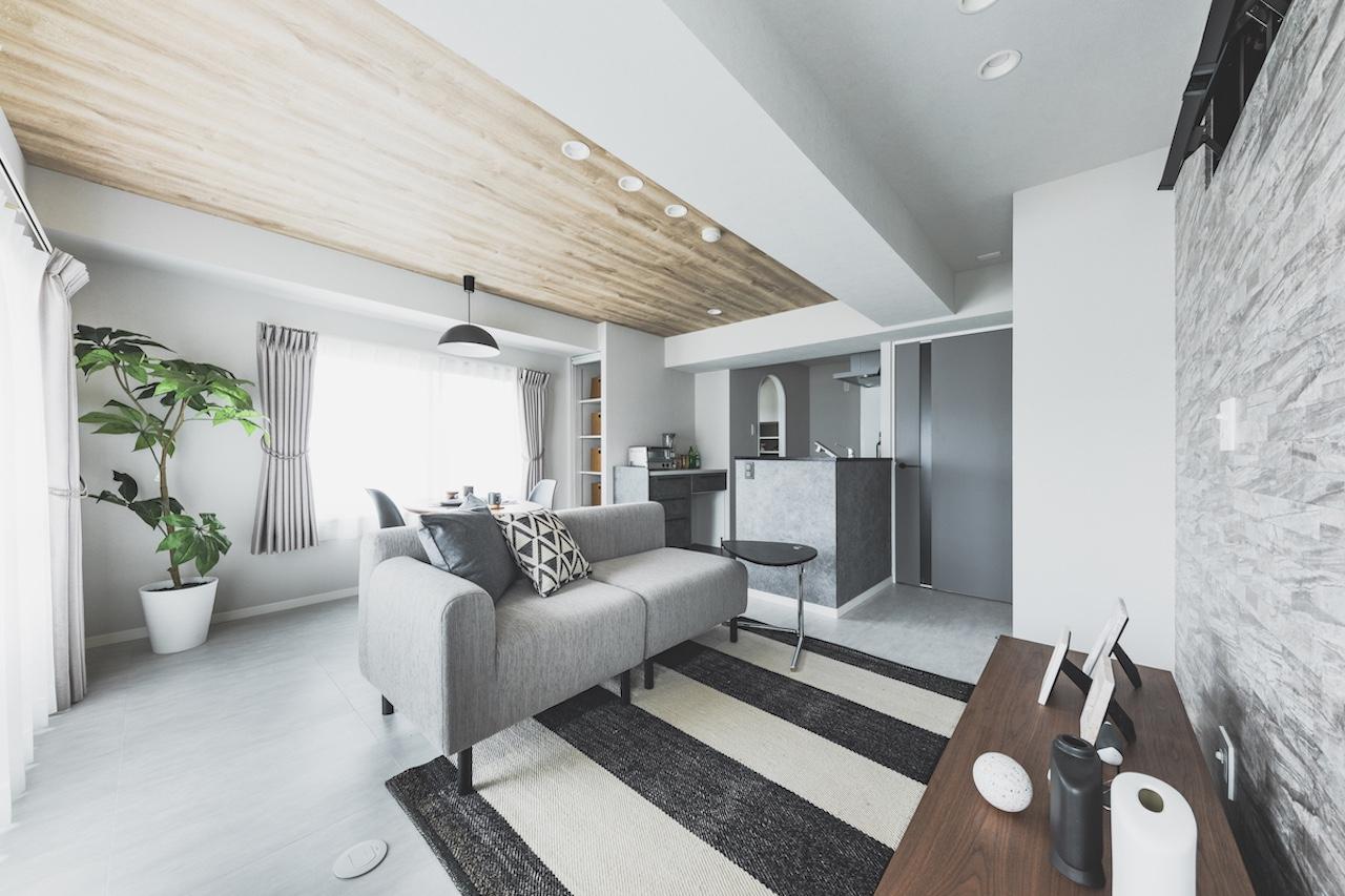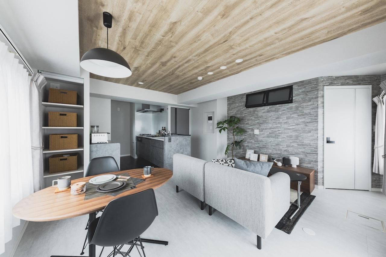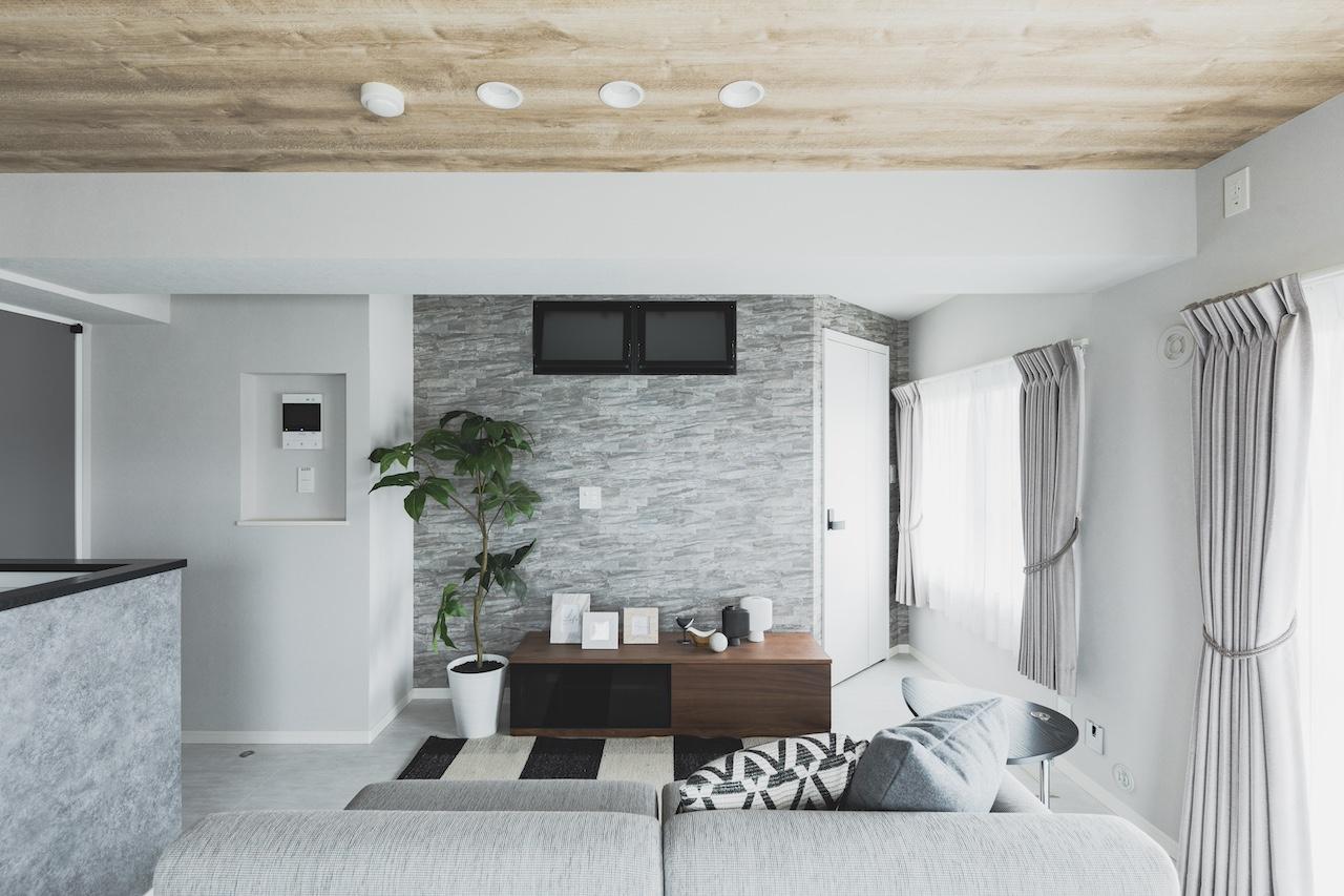 グレーの壁紙や石目調のフロアで、ホテルライクに仕上げたデザインです。 解放感のある眺望と、好きなものに囲まれた充実感を楽しめます。 子供部屋や収納など"欲しいスペース"を確保した、ムダのない間取りも見どころ!