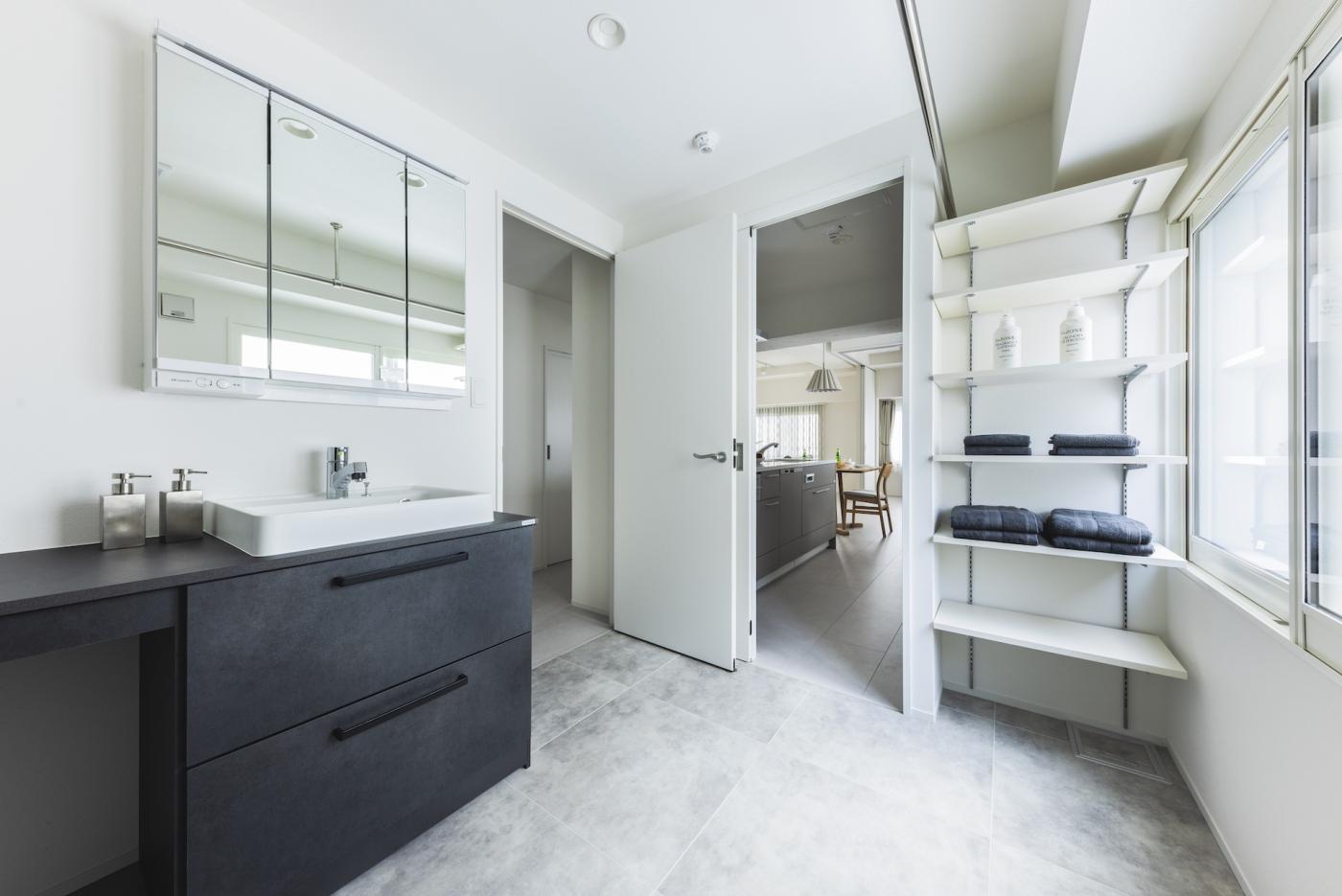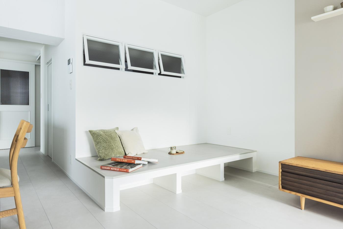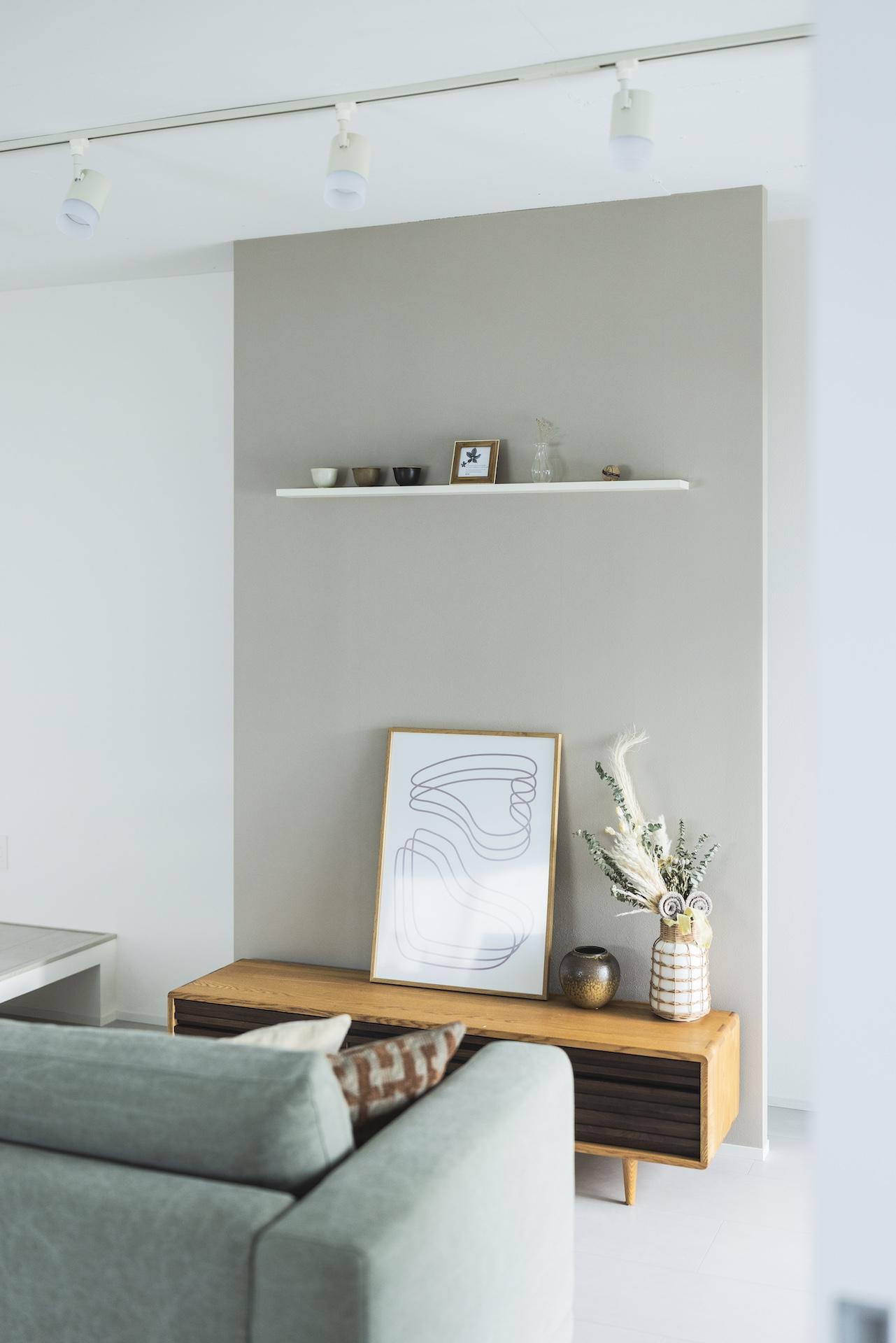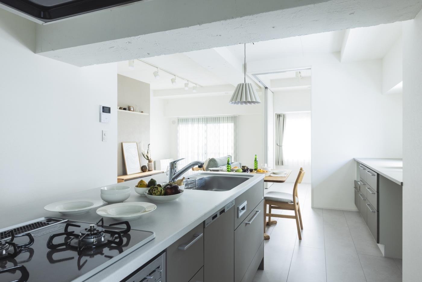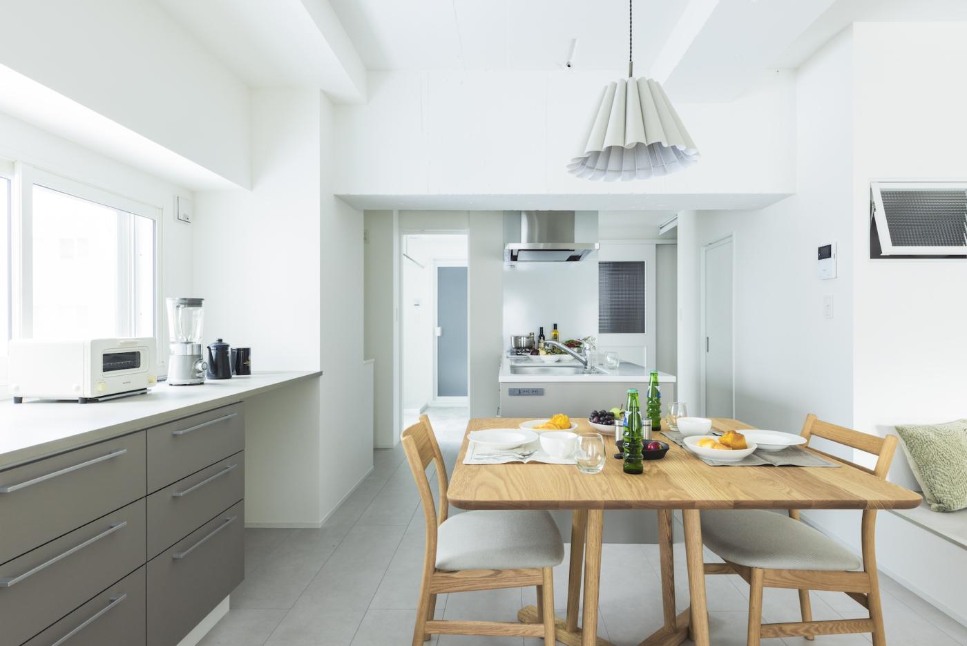 20帖のLDKとフリールームを隣接させることで、 開放感と広さを確保しました。 2600mmの天井高は、視覚的にも広さを感じることができます。 女性ならではの優しいリノベ空間を、ぜひご覧ください。